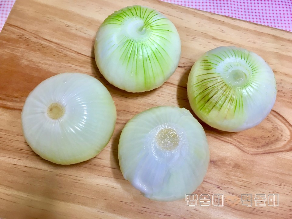 양파 4개를 껍질을 벗기고,