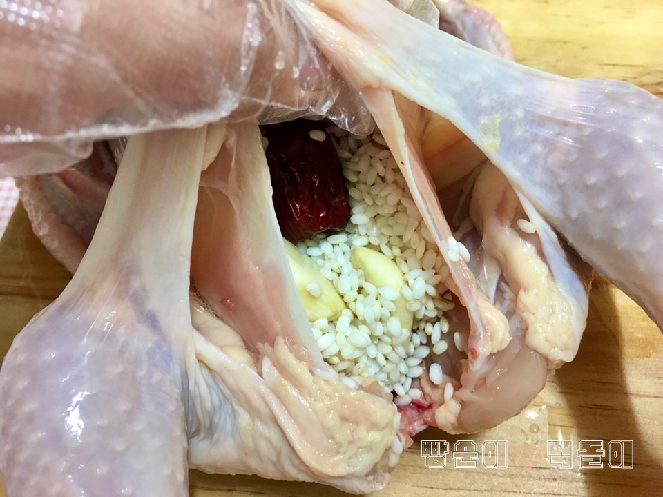 ▲ 생닭안에 찹쌀과 대추, 마늘
