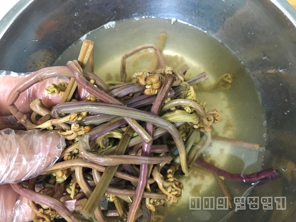 ▲ 건고사리를 물에 불려야 합니다. 불리는 시간은 대략 30분 이상입니다.