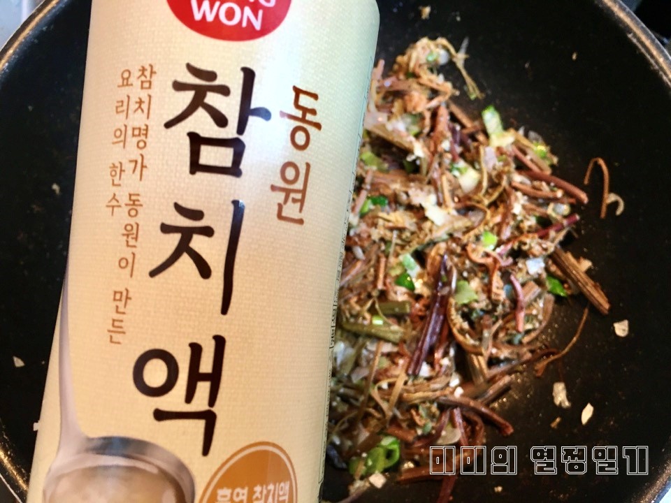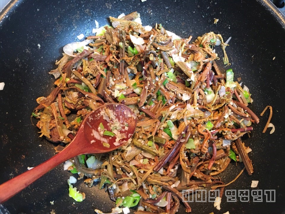 전체적으로 고사리에 들기름과 대파 마늘 향이 입혀지도록 몇 번 뒤집기 합니다.