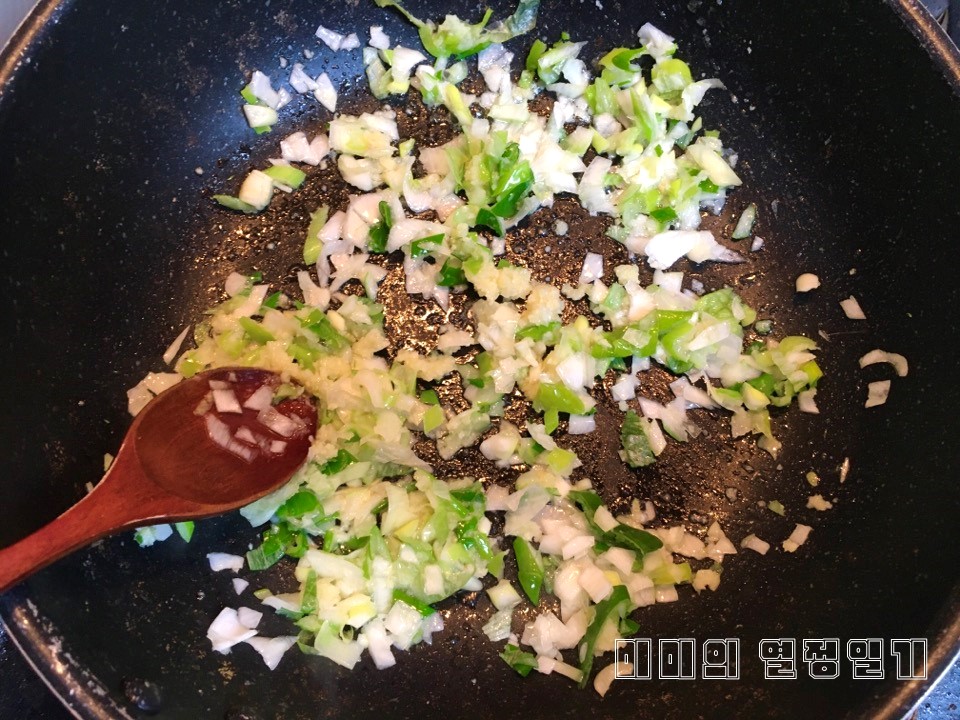 ▲ 이제 볶아주세요. 대파와 마늘의 향이 올라옵니다.^^