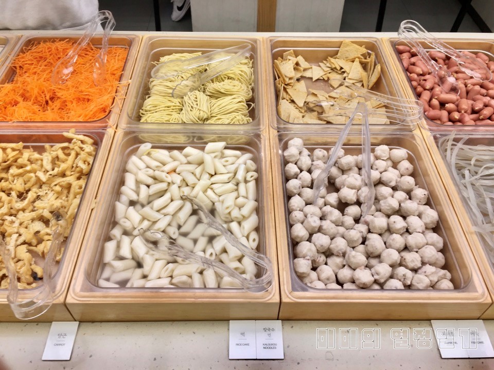 ▲ 야채 외에 부재료들입니다. 떡, 칼국수면, 유부, 어묵, 소세지 등이 있습니다.