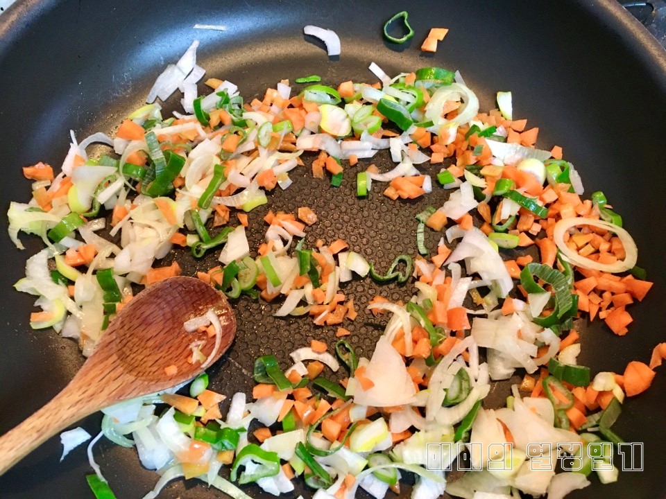 ▲ 대파, 당근, 양파 등 야채류를 모두 넣고 볶아주세요.