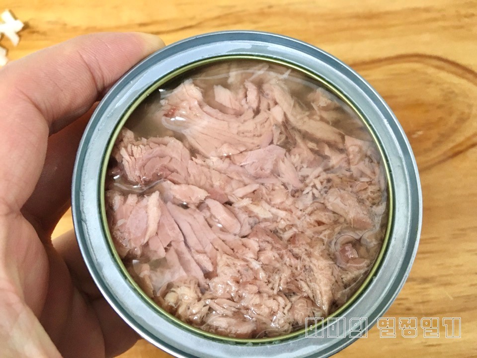 나중에 식용유나 올리브유를 사용할 것이기에, 참치에 있는 기름은 빼는 것이 좋습니다.