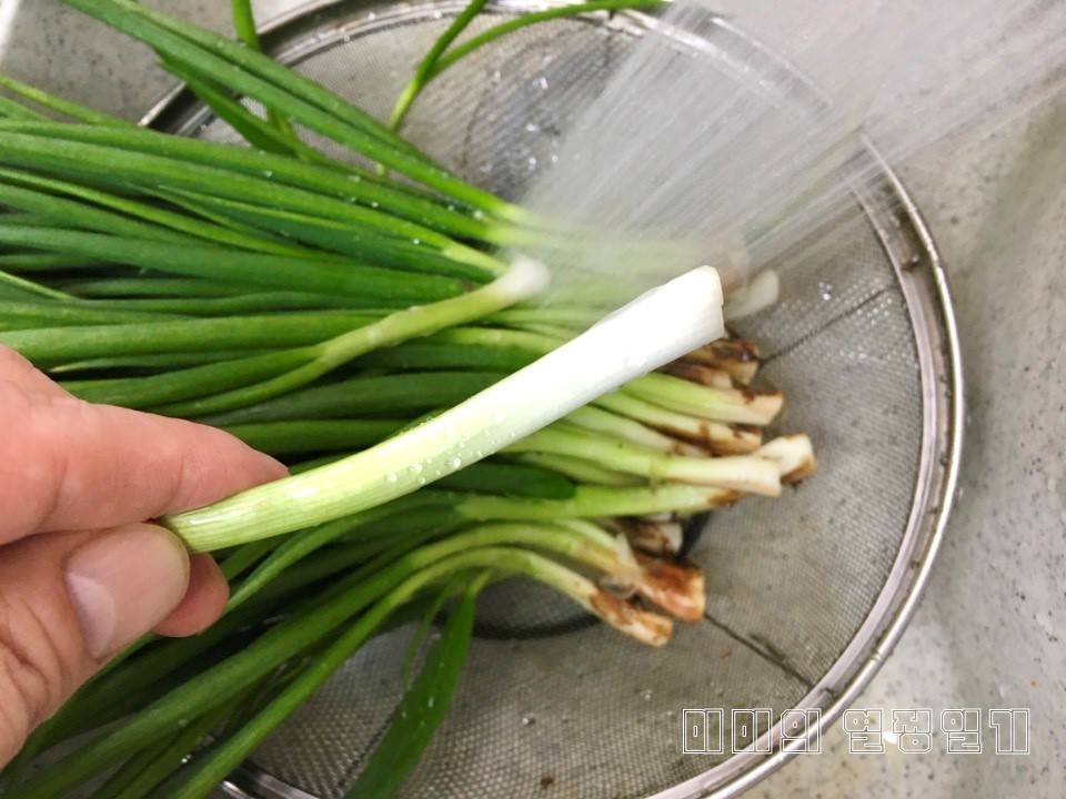① 열무와 쪽파 손질 후, 소금에 절이기
