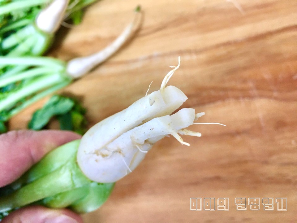 ▲ 열무의 뿌리 부분에는 흙이 많이 묻어 있습니다.