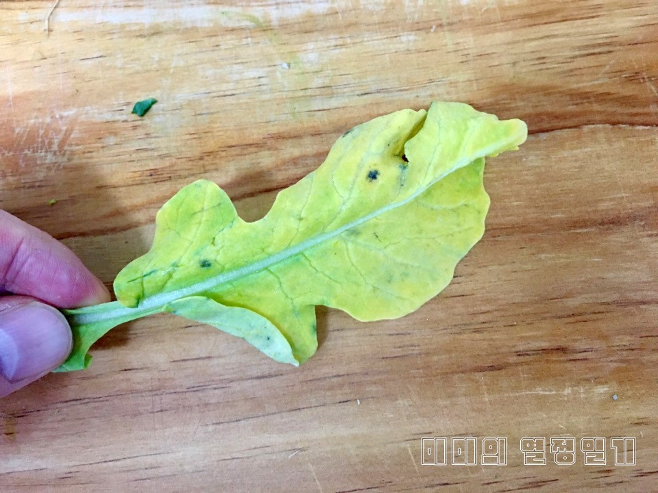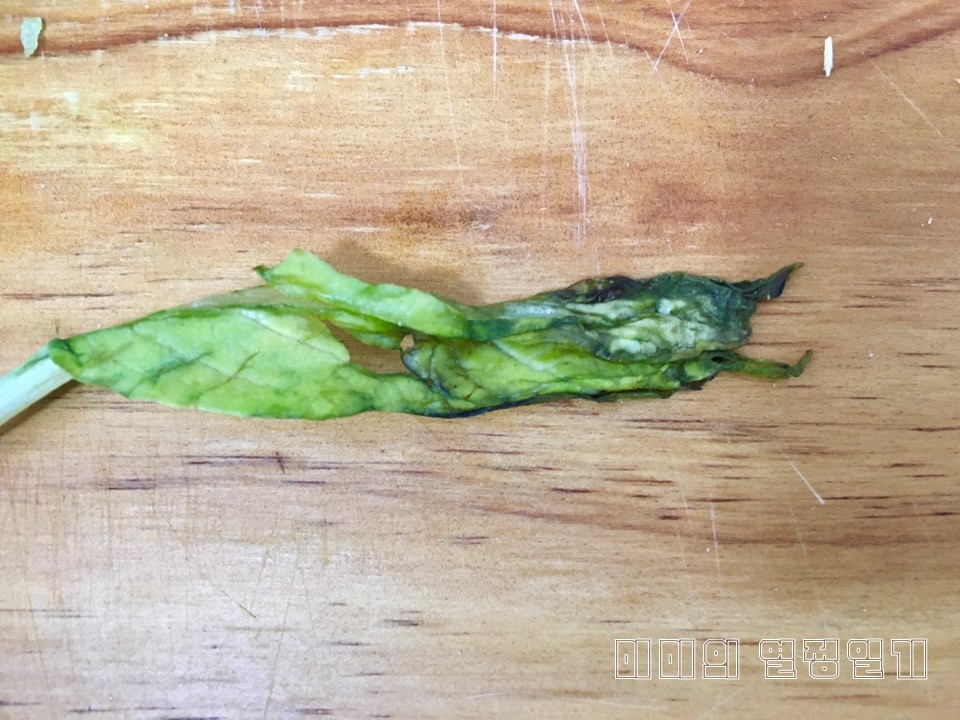 ▲ 이파리 중에 상했거나 변색된 것들을 제거합니다.