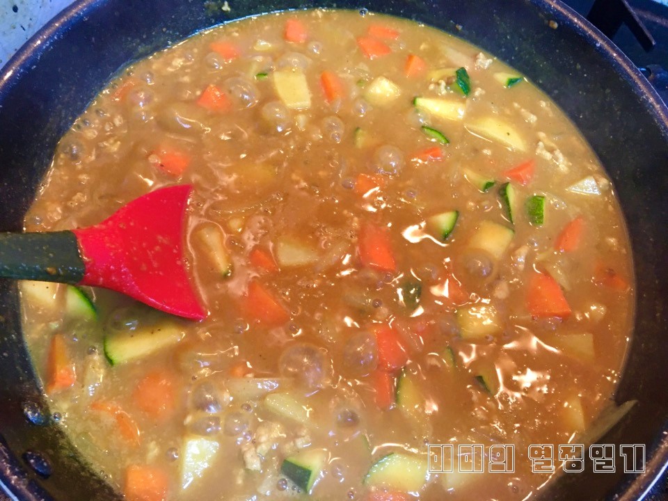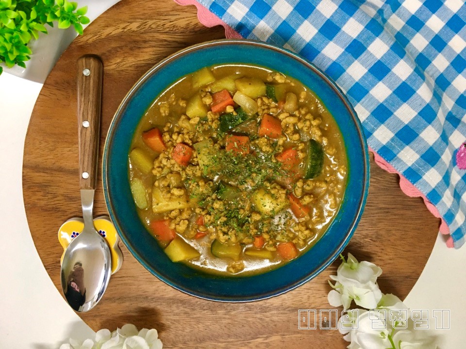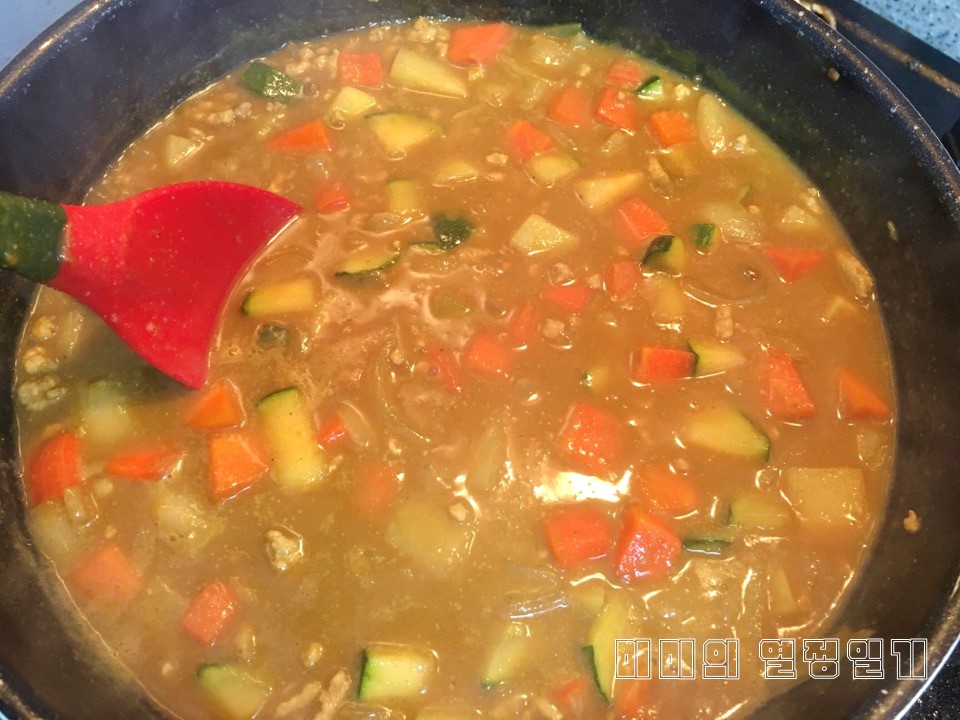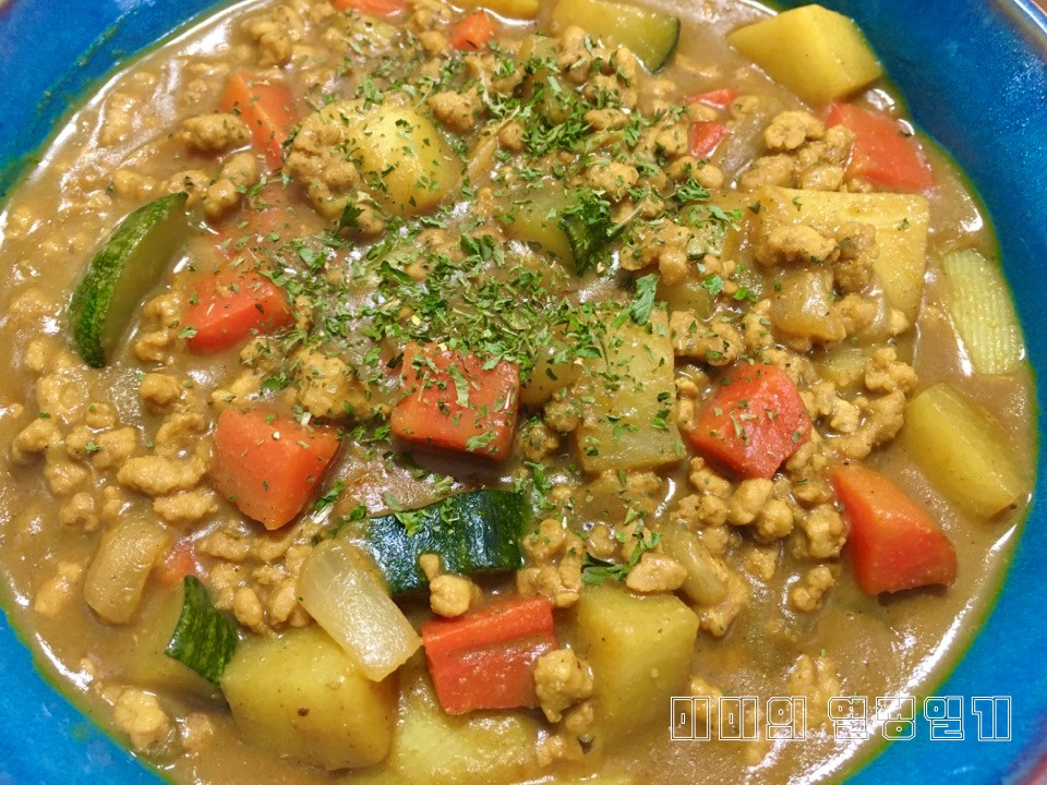 다짐육이 더욱 먹기도 편하고 카레에 잘 흡수되는 것 같아 좋습니다.