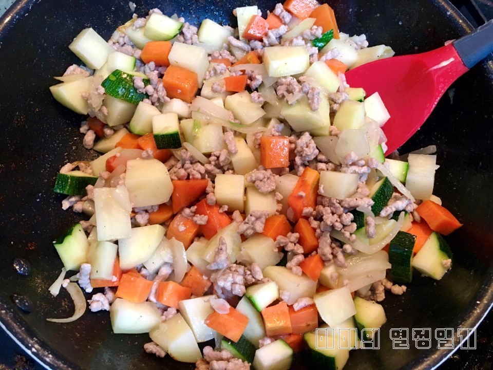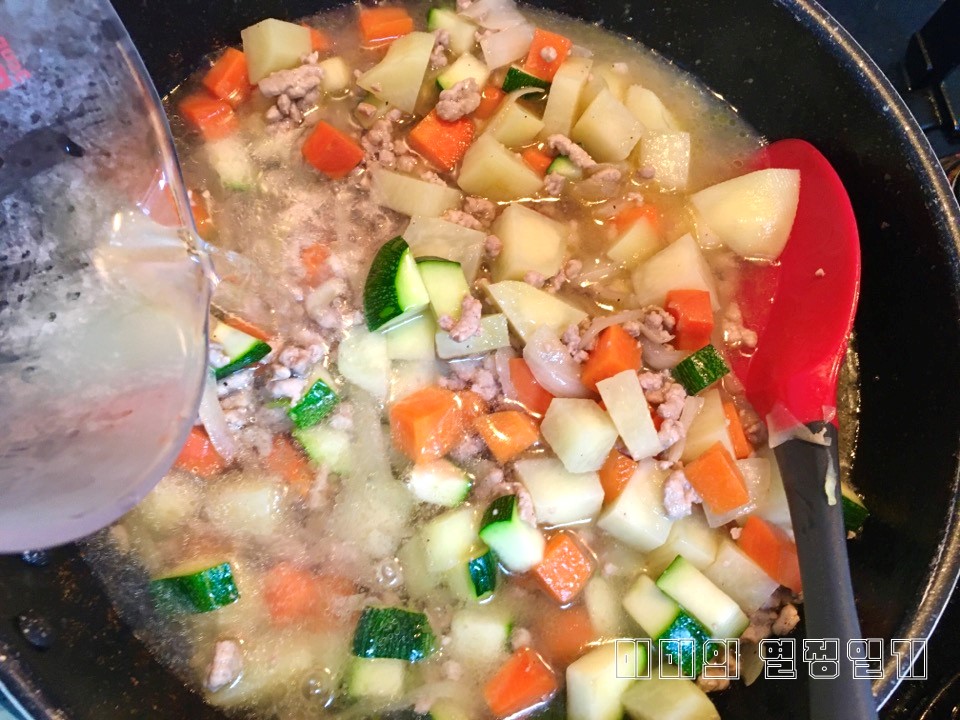 ▲ 이제 감자, 당근, 애호박 등 야채류를 모두 넣습니다.